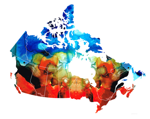 I have been creating colorful maps lately and was delighted to work on a piece for Canada. The country itself has an interesting shape with all of the inlets and islands. Vivid and alive just as the Canadians I have had…